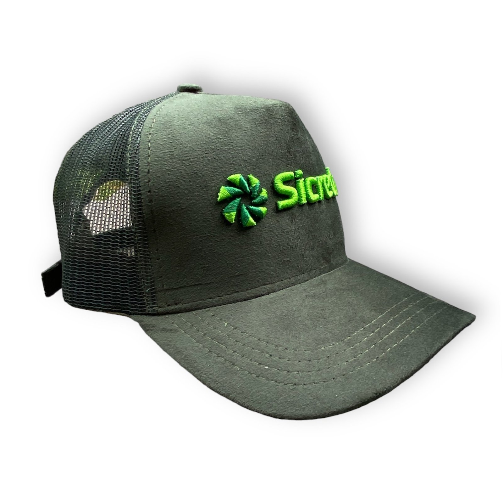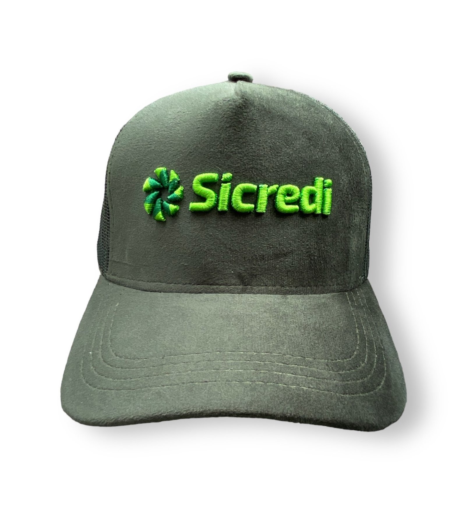 Boné Americano Tecido: veludo com telas Forro frontal: memória Aba: com 4 costuras Regulador: fivela plástico Logo: bordada com EVA colorido