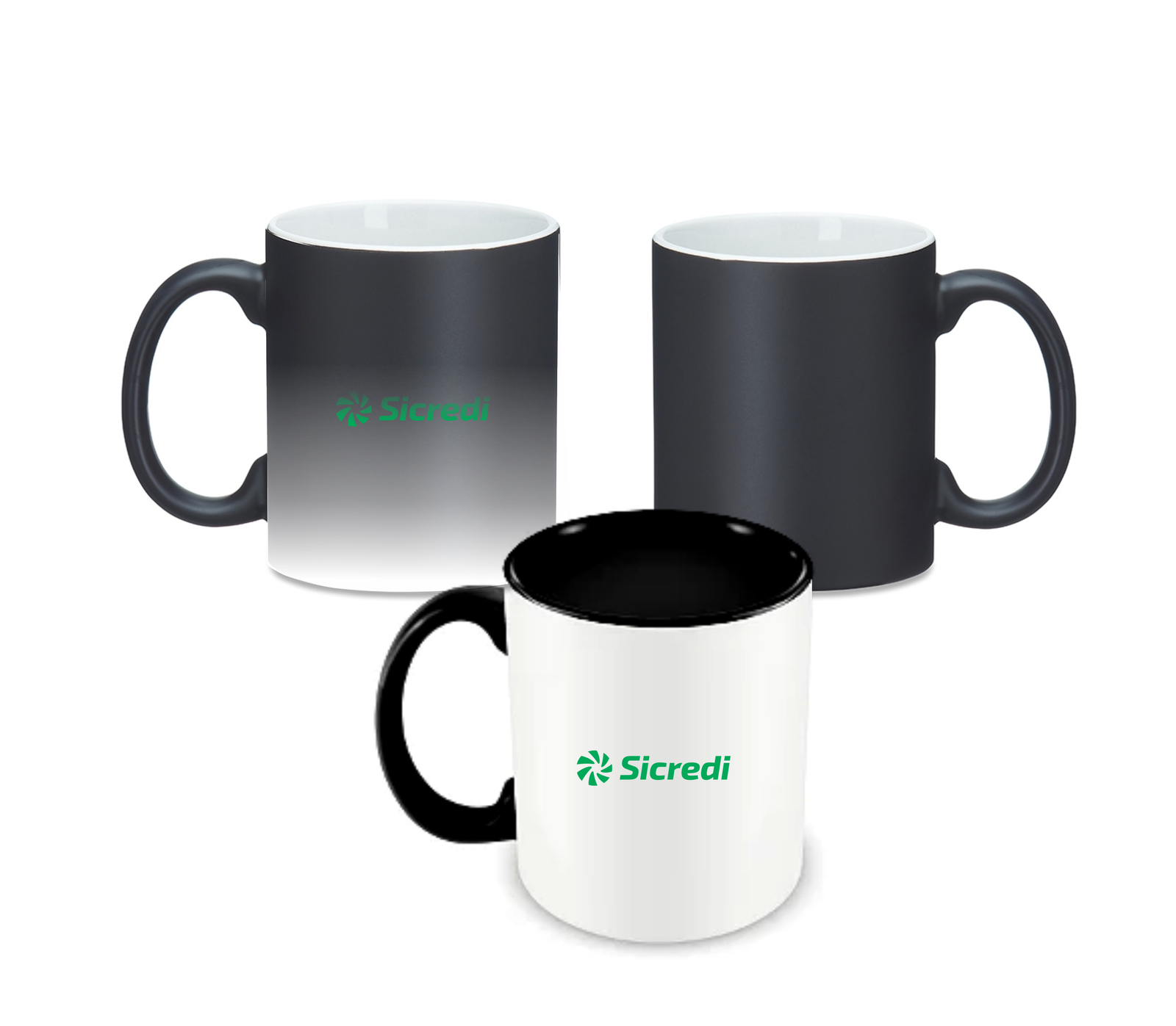 Descrição: Caneca mágica de 350ml, cerâmica sublimática com acabamento fosco.