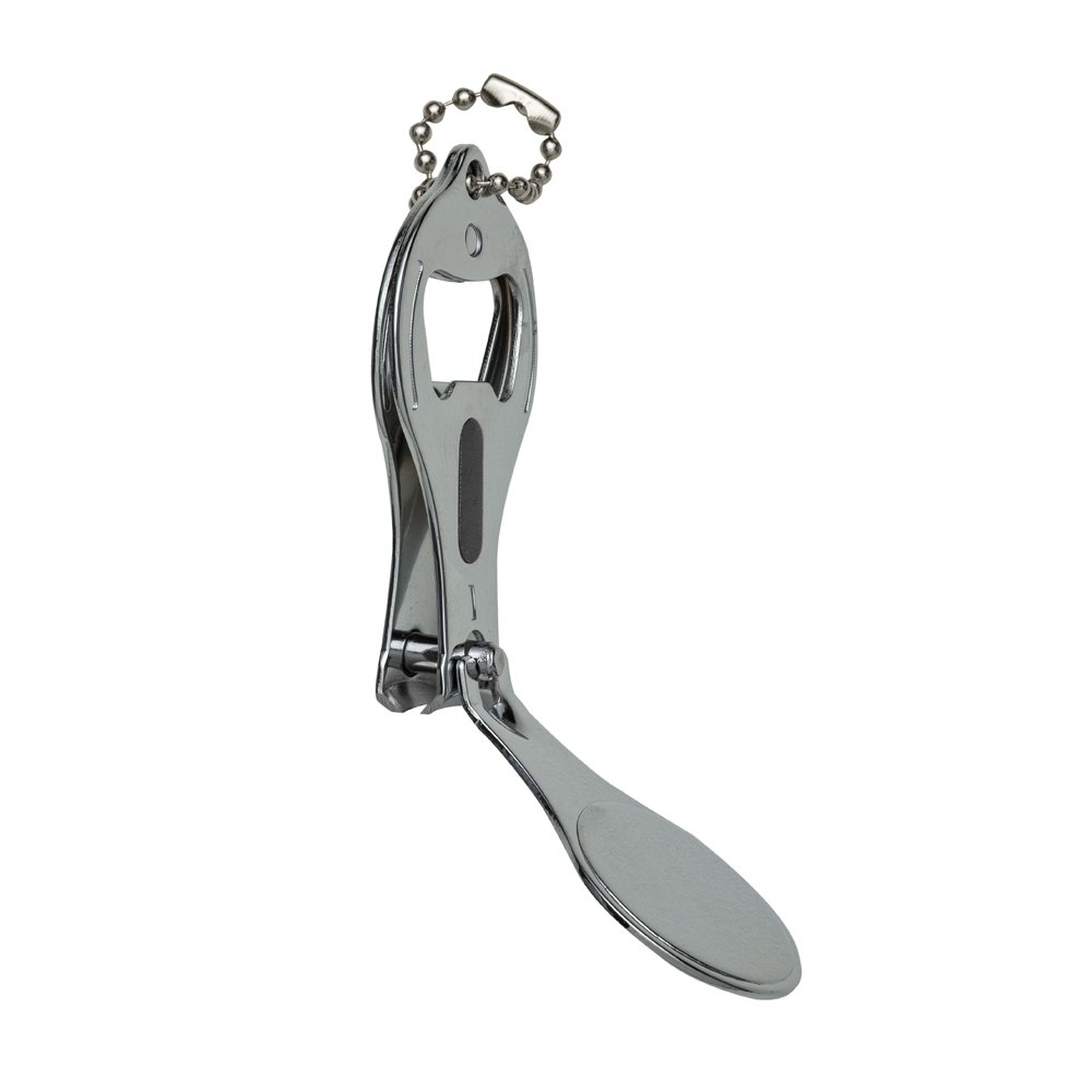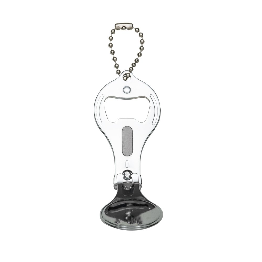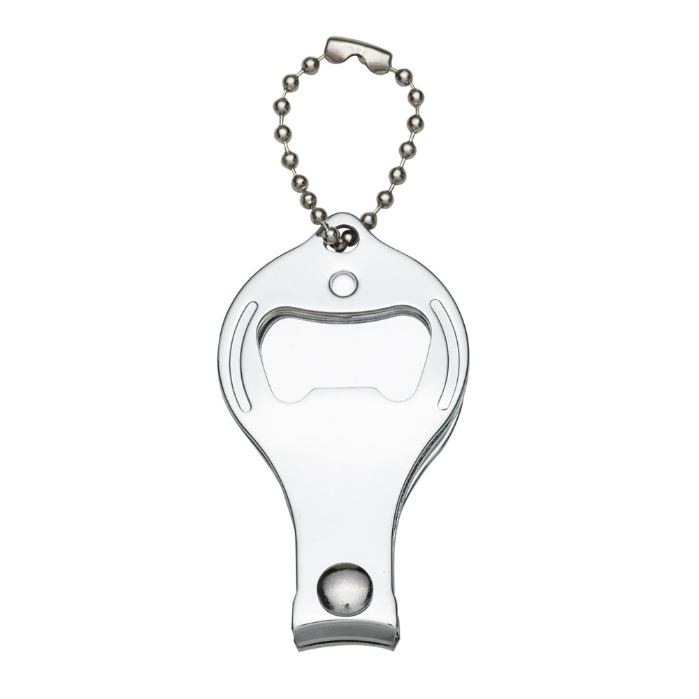 Descrição: Chaveiro metal 3 em 1: abridor, cortador e lixa. Parte central circular ideal para gravações, detalhe de traços no contorno circular. Lado frontal com detalhes em relevo nas laterais e pequeno círculo acima do abridor. Para utilizar o cortador basta rotacionar a peça circular e levantá-la, Acompanha correntinha.