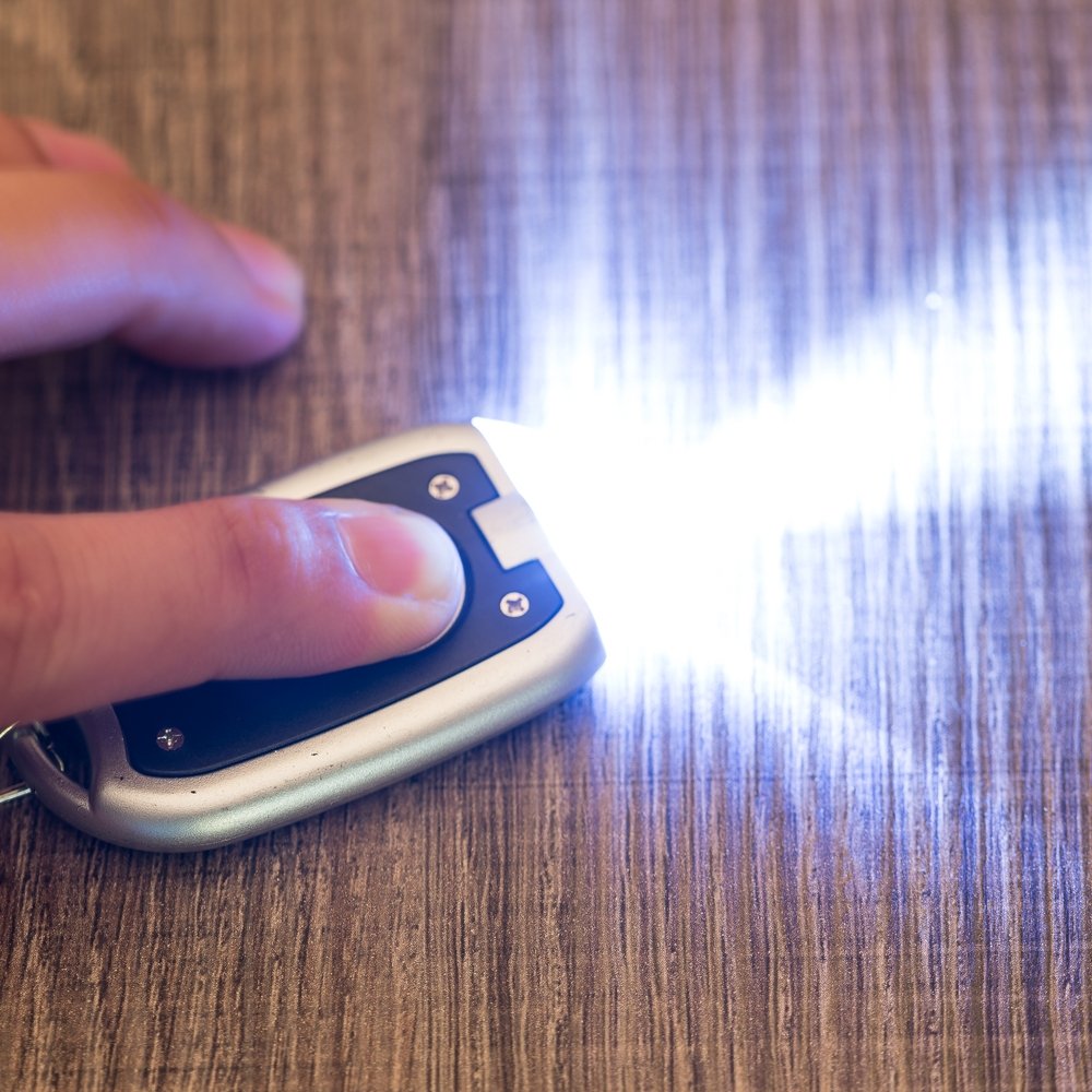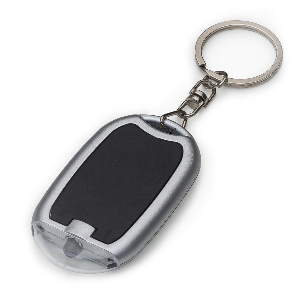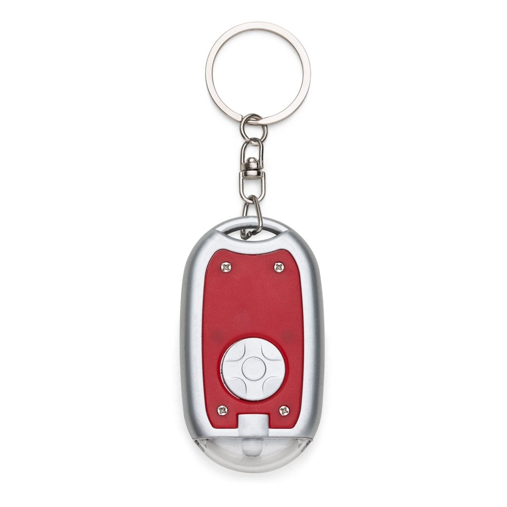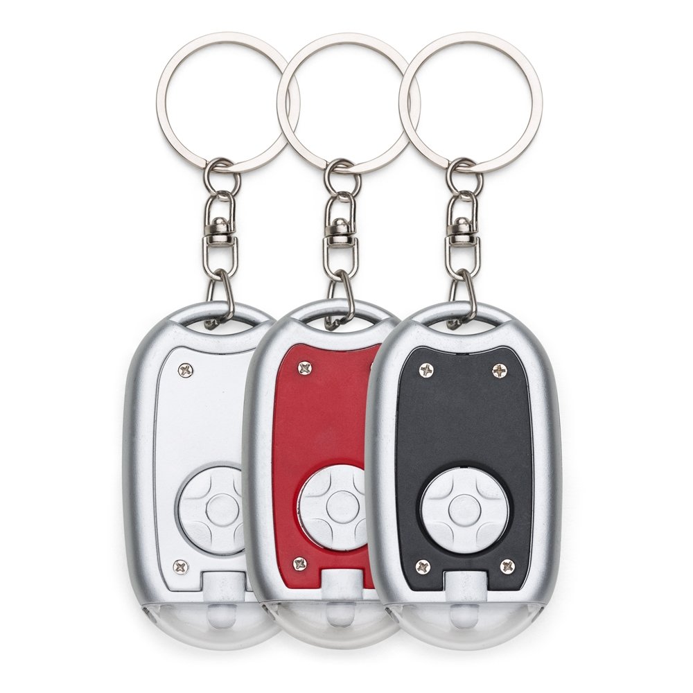 Descrição: Chaveiro lanterna plástico, parte central colorida lisa e verso com botão para acionar lanterna. Possui as laterais em prata e lanterna com proteção acrílica, acompanha 3 baterias(duas LR1130 e uma CNB G10).