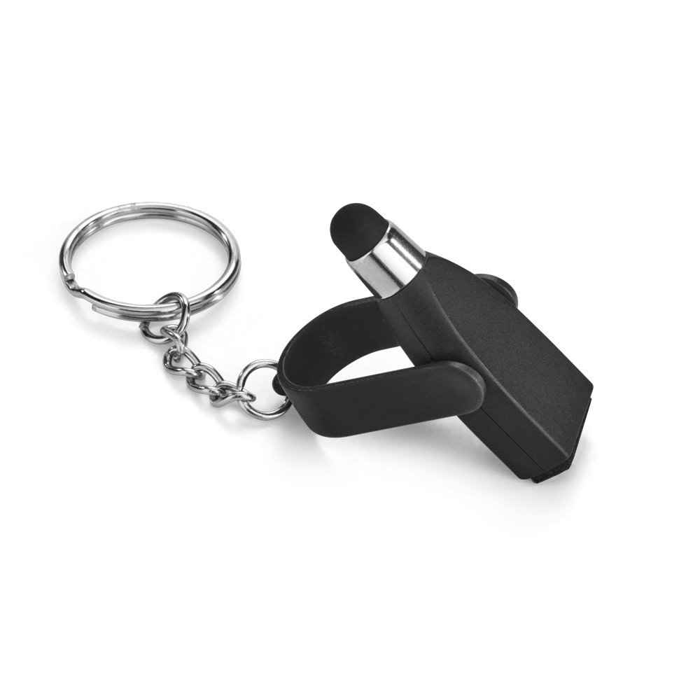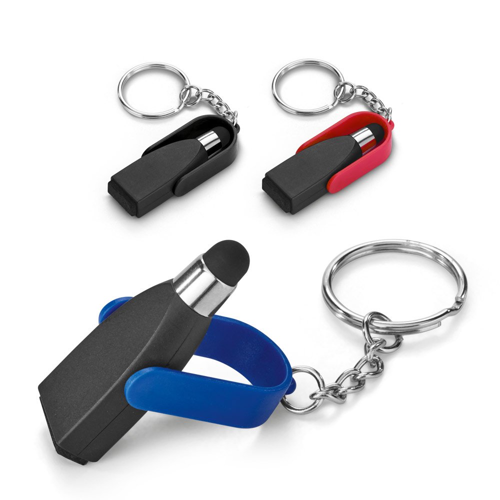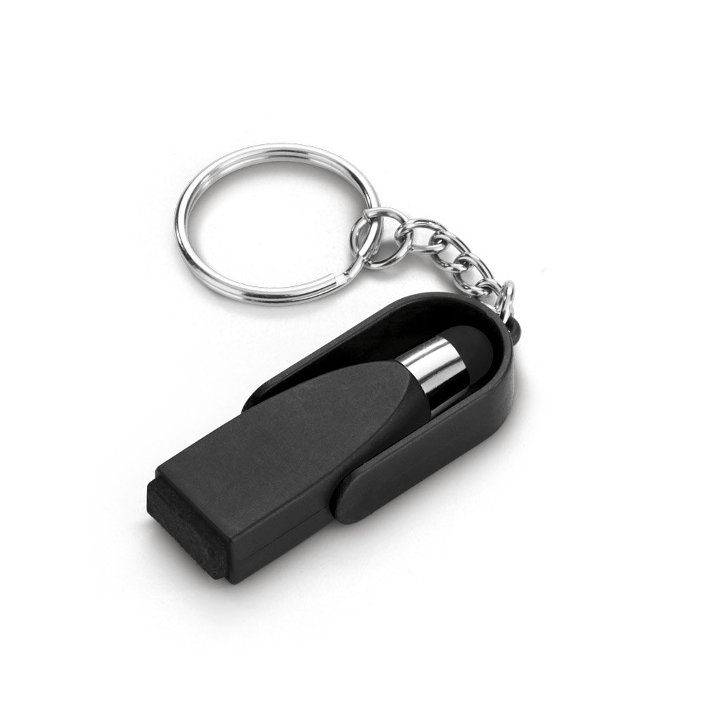 Chaveiro em ABS com ponteira touch e limpador de tela. 19 x 55 x 9 mm