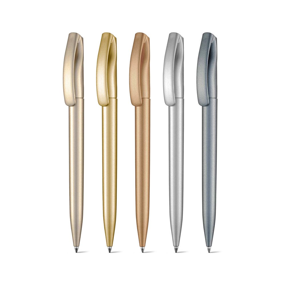 Esferográfica com acabamento metalizado e tinta Dokumental® até 2 km de escrita. ø9 x 140 mm
