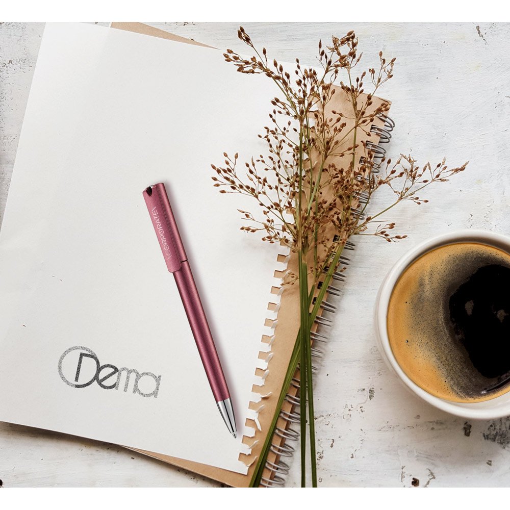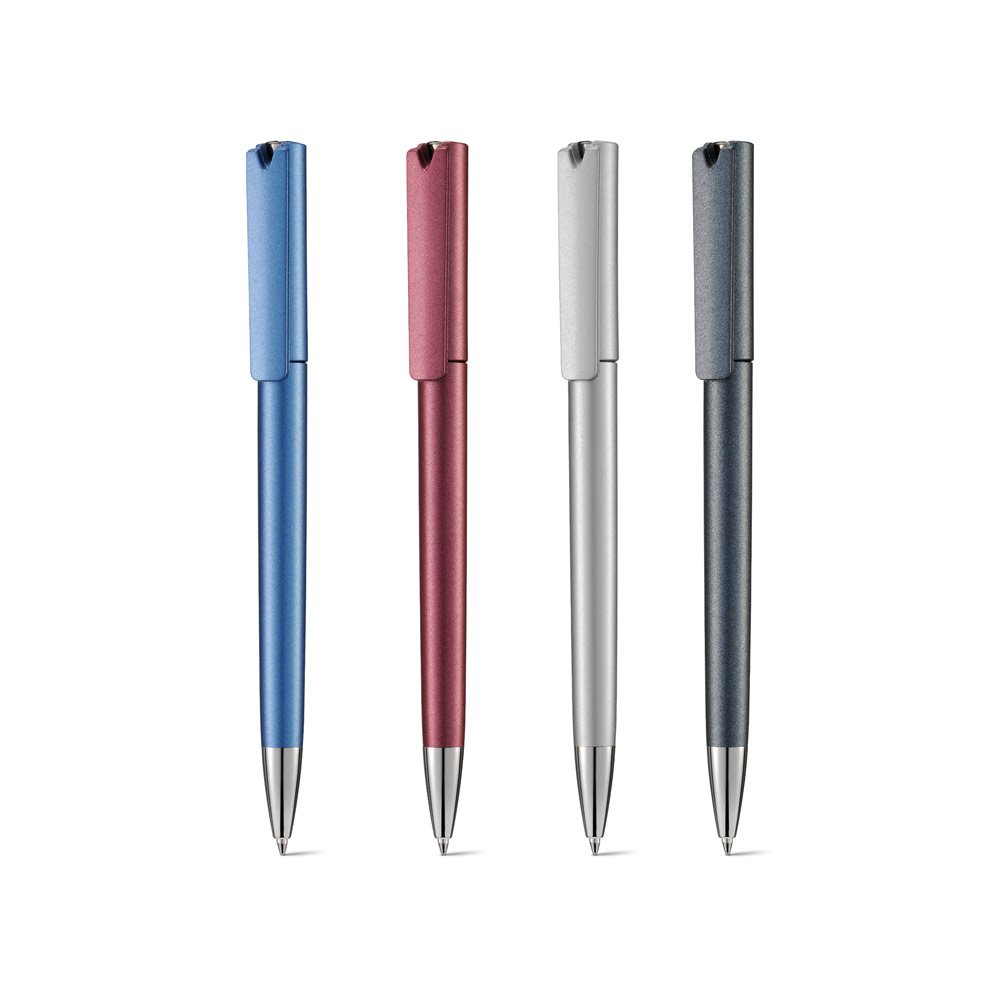 Esferográfica com acabamento metalizado e ponteira de metal. Tinta Dokumental® até 2,5 km de escrita. ø9 x 140 mm
