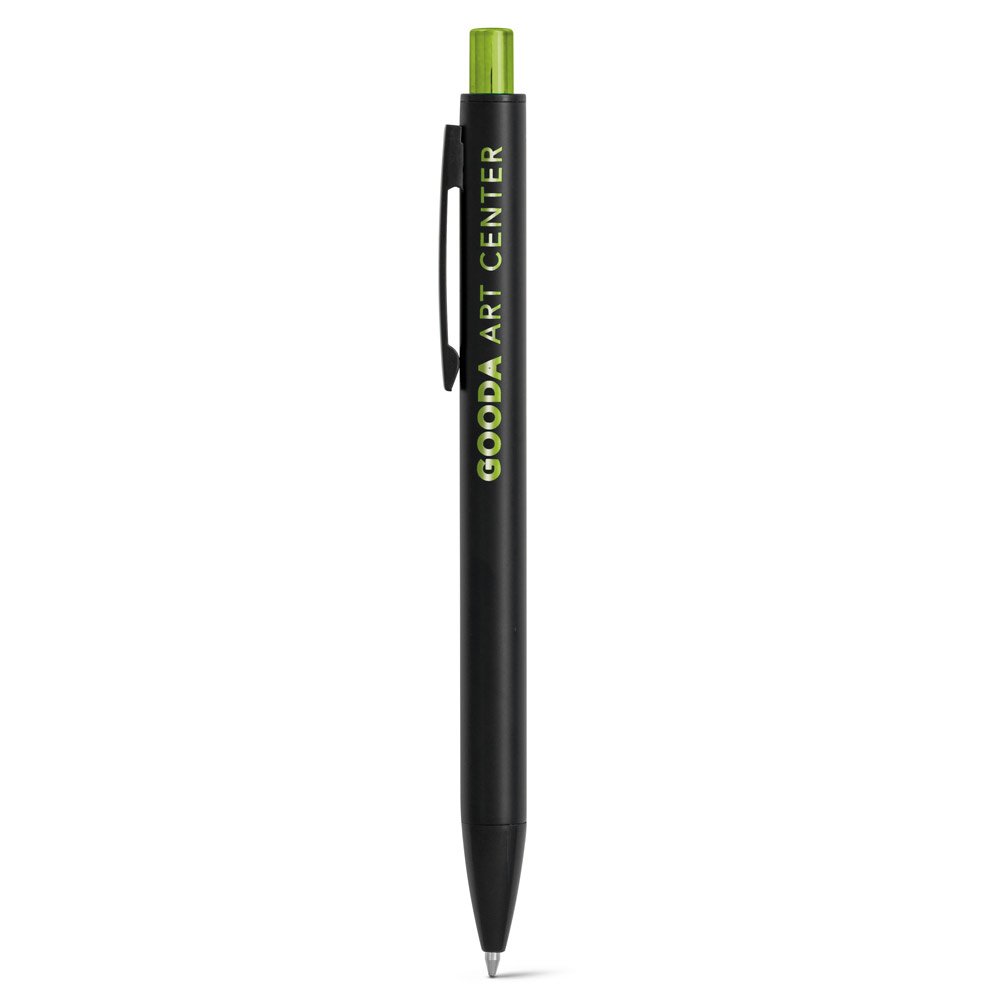 Esferográfica em alumínio com acabamento mate e botão com acabamento brilhante. Corpo com duplo acabamento. ø10 x 140 mm
