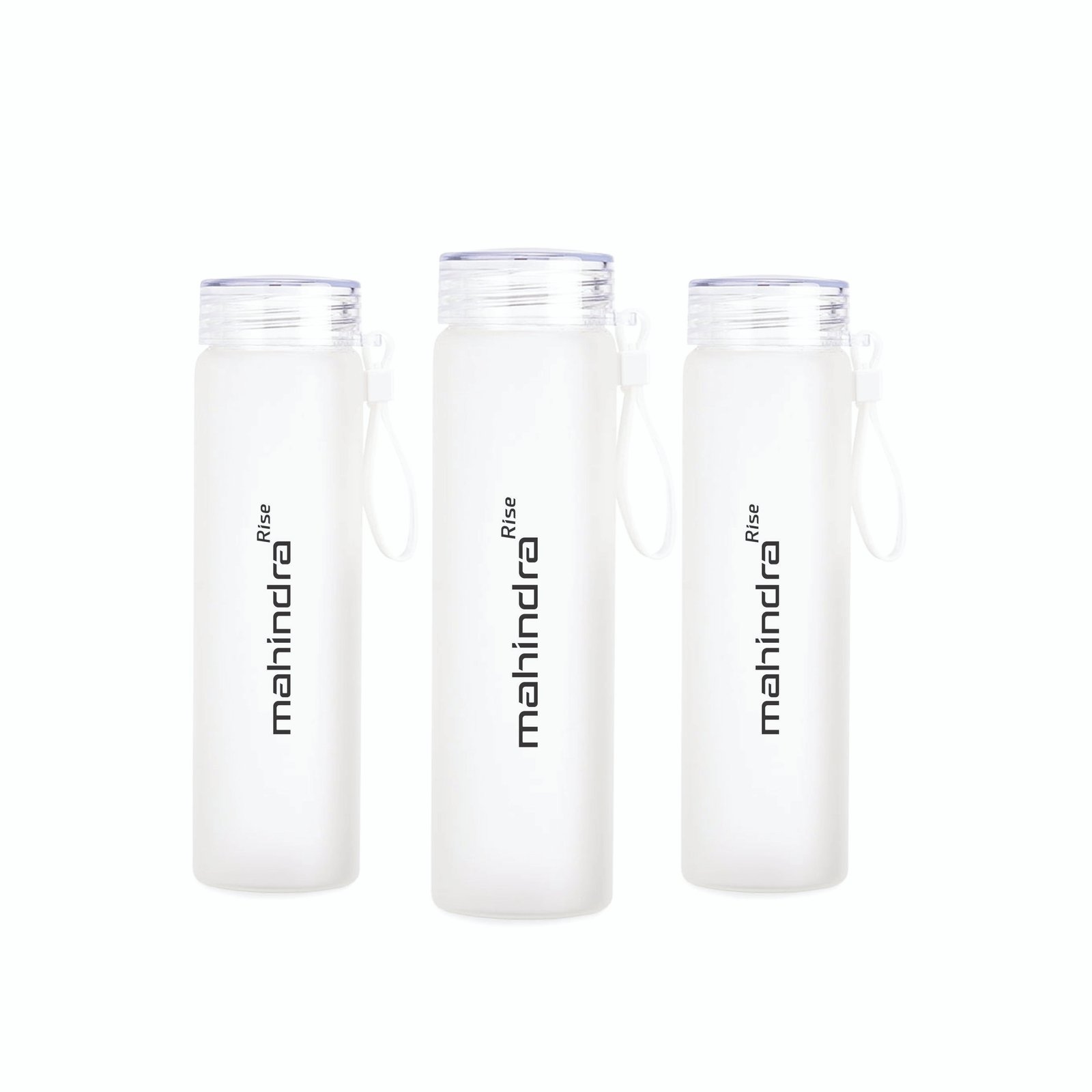 Descrição: Garrafa de vidro jateado bicolor, capacidade de 450ml. Contém alça de silicone.
