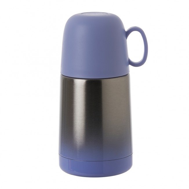 Descrição: Garrafa térmica 250ml com acabamento degradê, contém tampa hermética rosqueável com botão de acionamento e tampa externa plástica com alça, podendo ser utilizada como xícara.