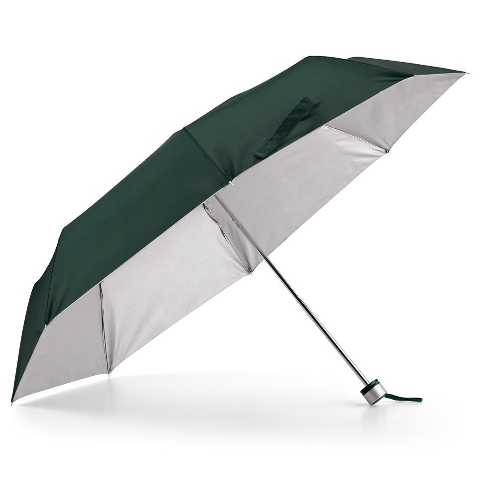 Guarda-chuva em poliéster 190T dobrável em 3 secções e de abertura manual. Disponível em várias cores, com interior em cinza. Guarda-chuva prático e leve fornecido em bolsa. ø960 mm | 240 mm | Bolsa: ø40 x 225 mm