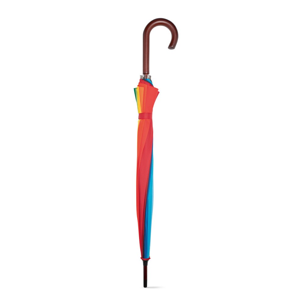 Guarda-chuva arco-íris em 190T pongee com 16 varetas e pega em madeira. ø1020 x 875 mm