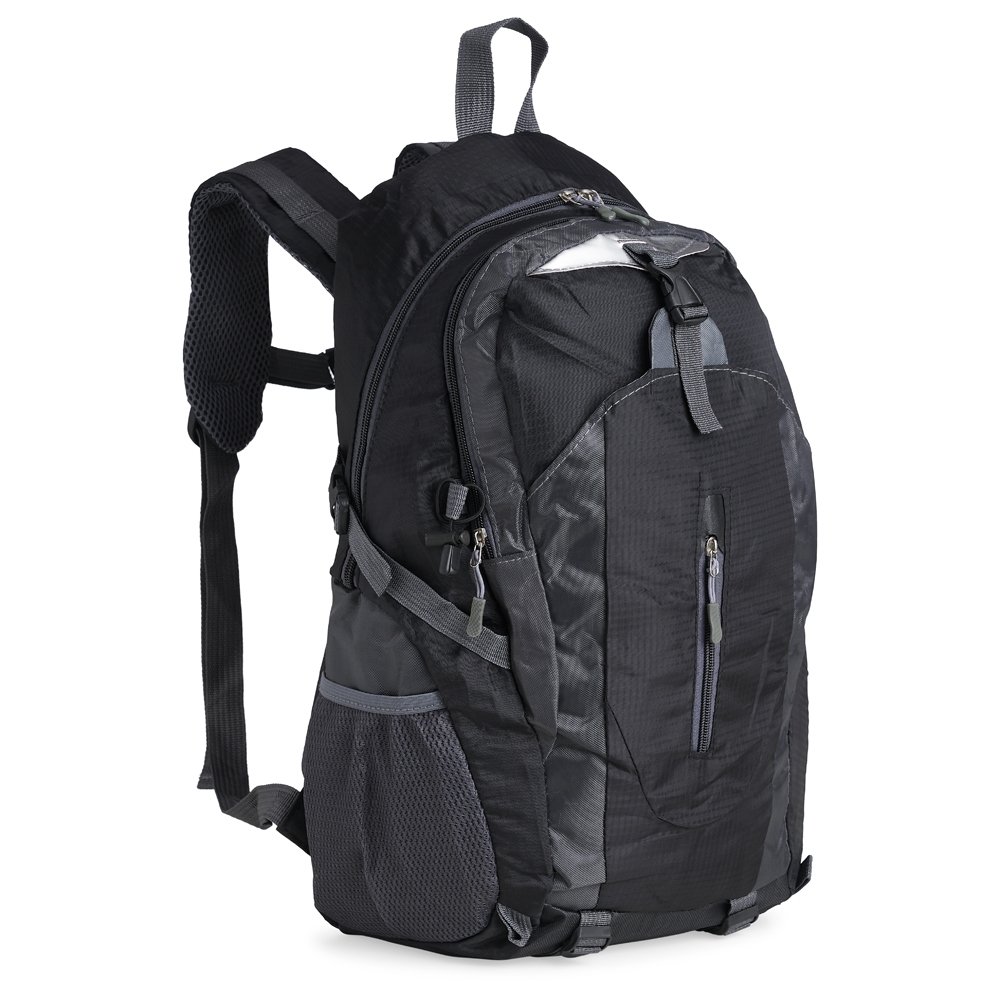 Descrição: Mochila esportiva de 28 litros em nylon resistente à água com quatro compartimentos, sendo o principal com bolso para notebook 15’6 polegadas. Contém bolsos laterais em malha, alças e área costada com revestimento espumado e alças de compressão.