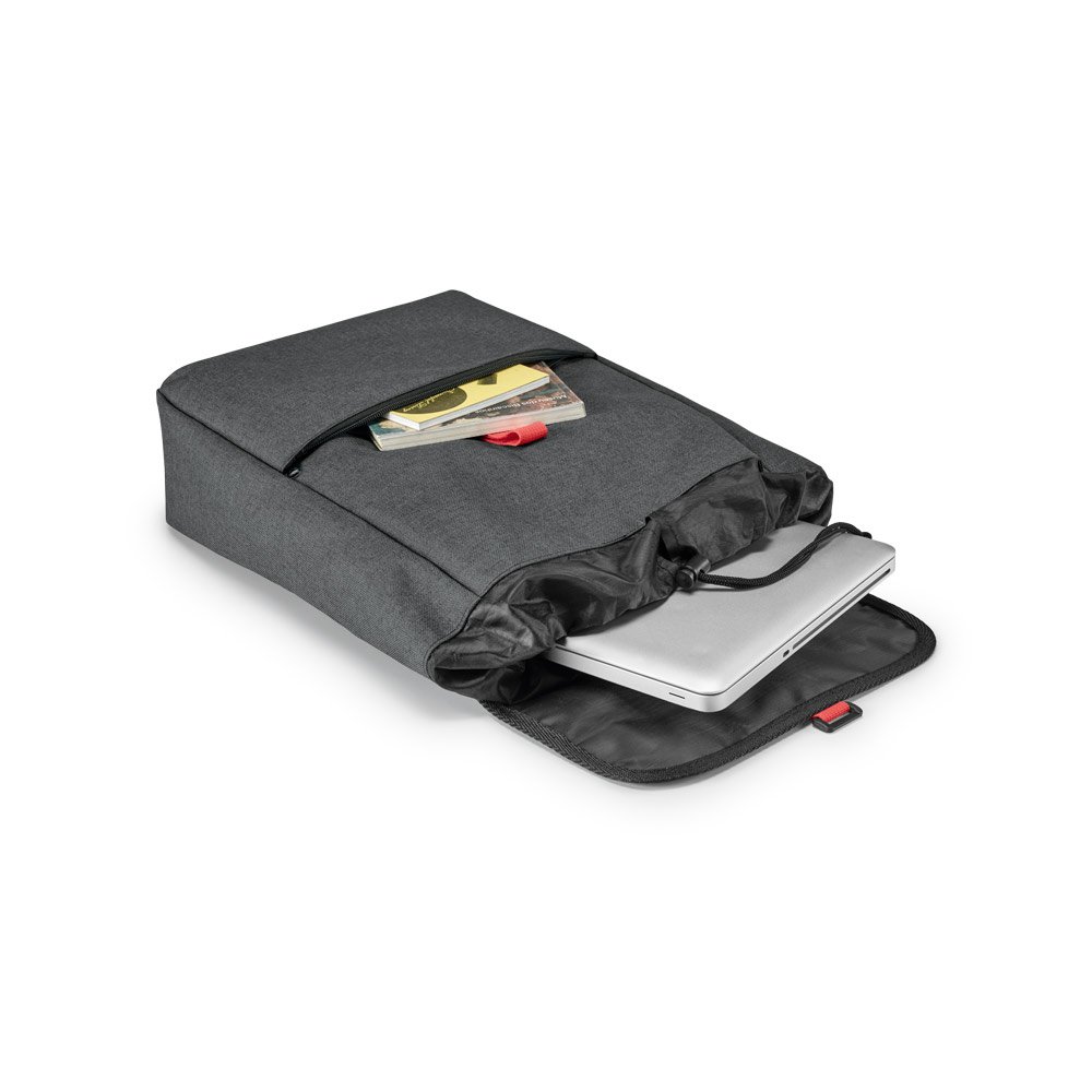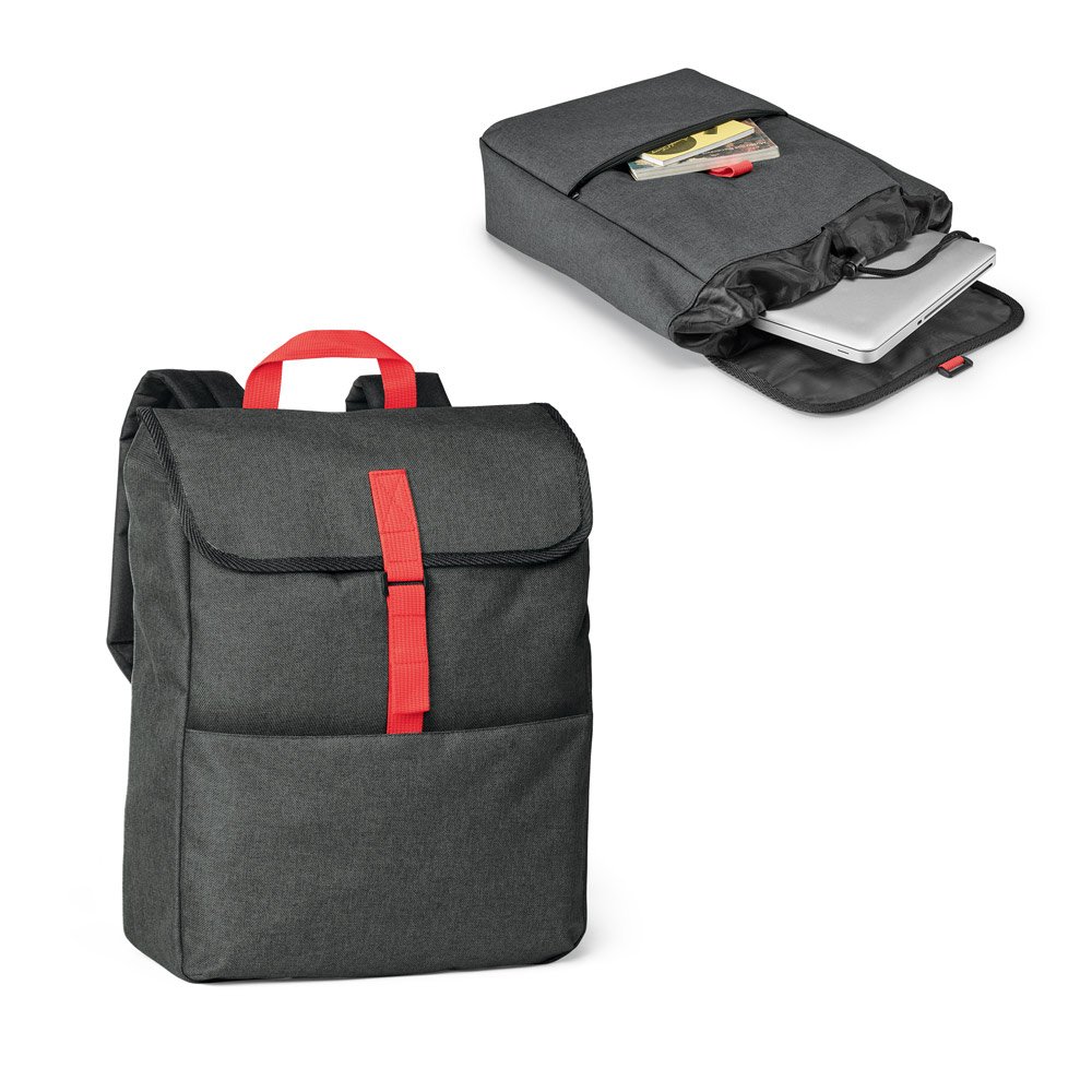 Mochila para notebook em 600D de alta densidade. Compartimento principal com divisória almofadada para notebook até 15.6″. Bolso frontal com zíper. Parte posterior e alças almofadadas. 290 x 370 x 110 mm