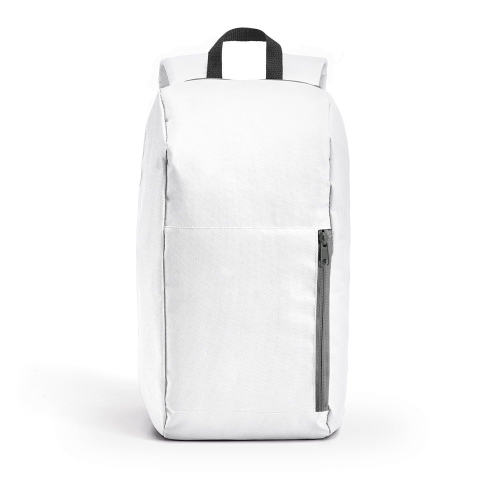 Mochila em 600D com bolso exterior frontal com zíper. Parte posterior almofadada, com sistema de apoio acolchoado para as costas e alças almofadadas. 245 x 400 x 115 mm