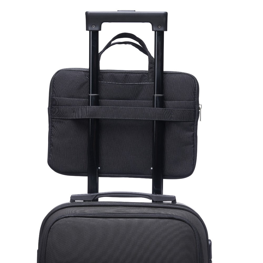Descrição: Pasta executiva para Tablet e Laptop a prova d’água. Confeccionada em poliéster a pasta tem o compartimento principal com o interior aveludado para maior proteção do notebook, além de 6 compartimentos externos e uma alça para encaixe em mala de viagem.