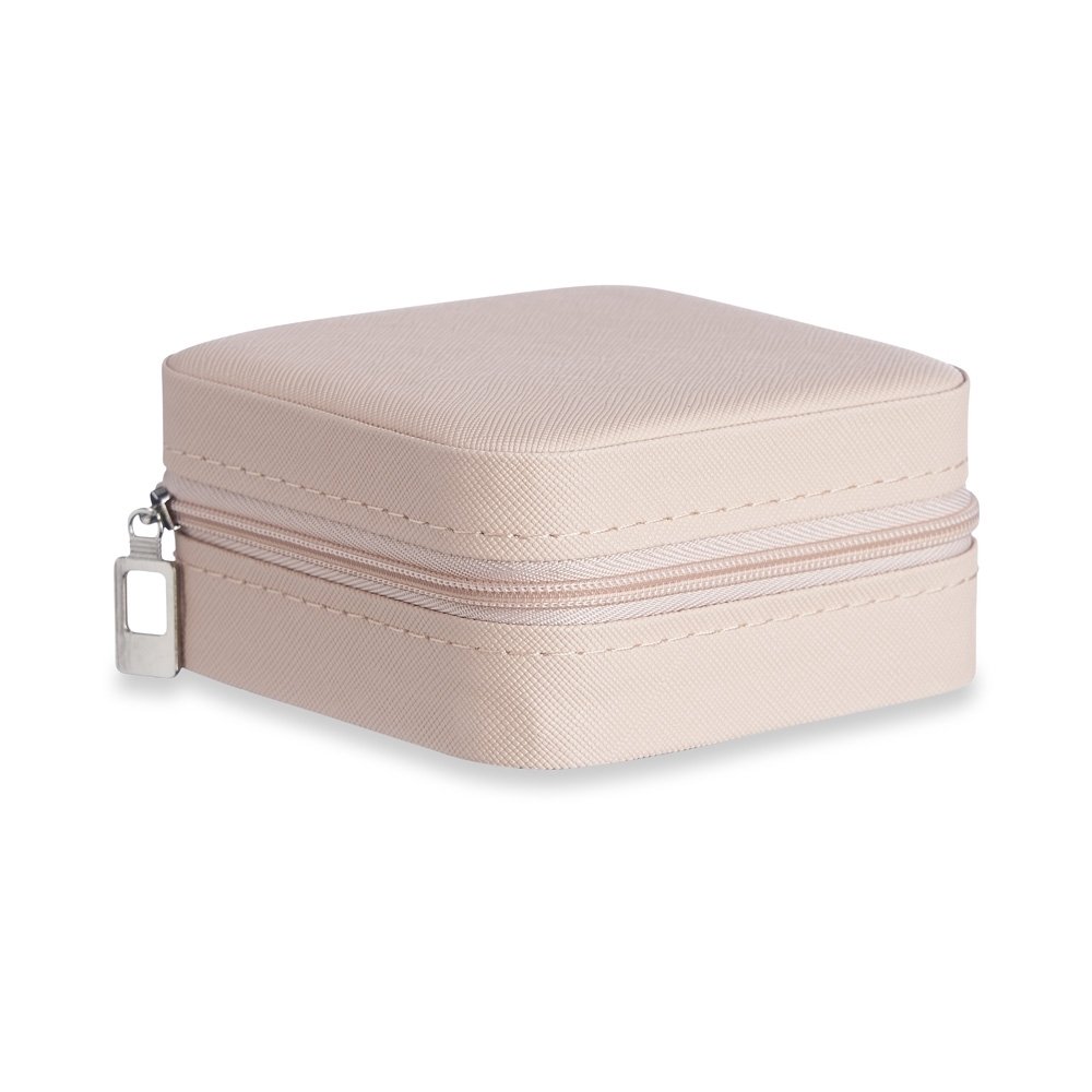 Descrição: Porta joias de couro sintético com revestimento aveludado. Possui compartimentos internos para anéis, brincos, pulseiras e colares.