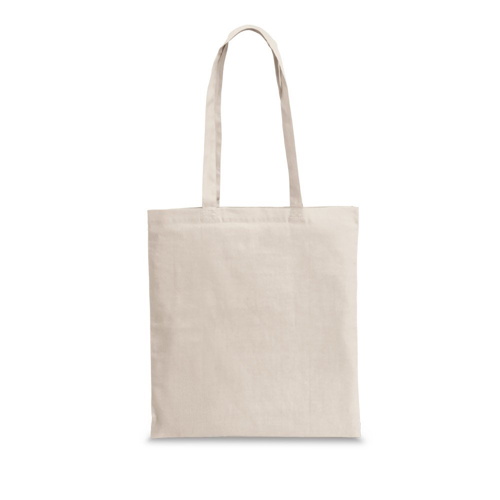 Sacola em algodão reciclado e poliéster (140 g/m²) com alças de 65 cm. 380 x 429 mm